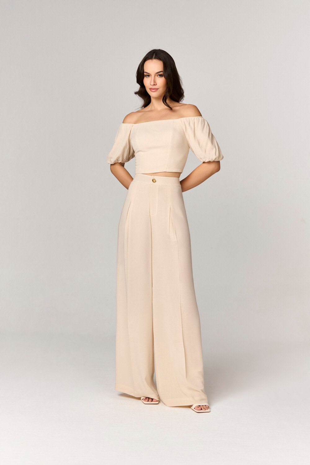 CONJUNTO CALCA E CROPPED COM DETALHE PREGAS E OMBRO A OMBRO – 11223511