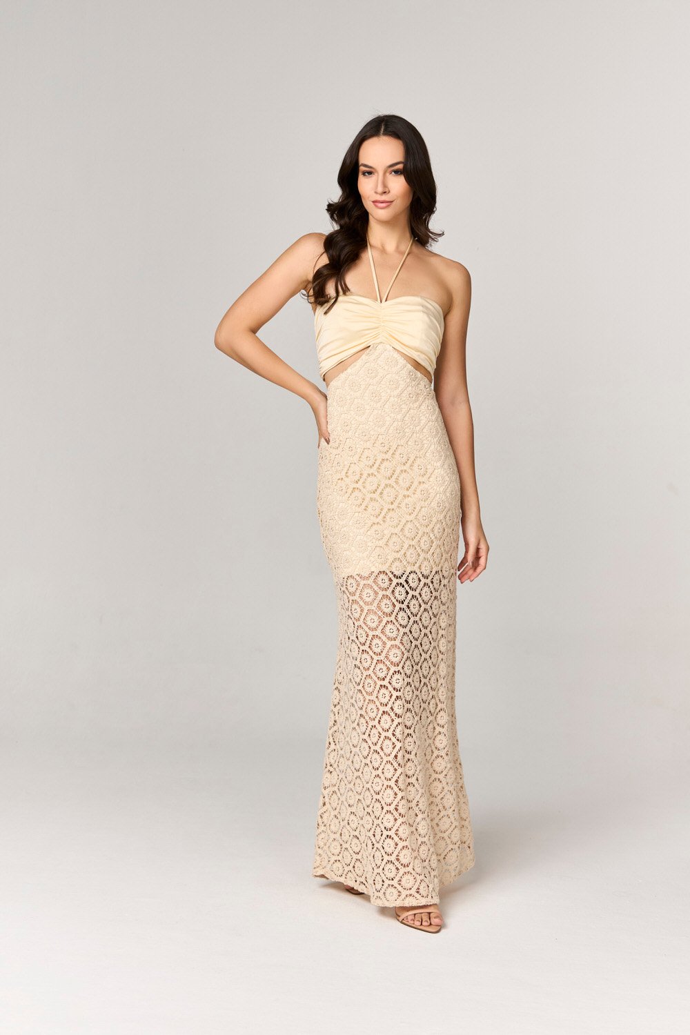 VESTIDO LONGO COM MIX DE CROCHE E MALHA COM AMARRACAO – 1076611